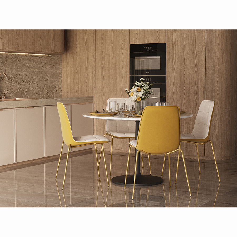 "Благодаря легкому, утонченному силуэту и спокойной цветовой гамме стул Helene вписывается практически в любое оформление интерьера и не утяжеляет пространство. Округлые формы и декоративная строчка на обивке из бархатистого велюра придают дизайну элегантность. Сиденье плавно переходит в спинку, которая имеет небольшой наклон для комфортной посадки. Этот предмет мебели можно использовать для обустройства обеденной группы, зоны для работы и отдыха.