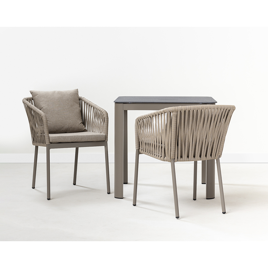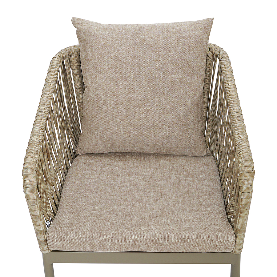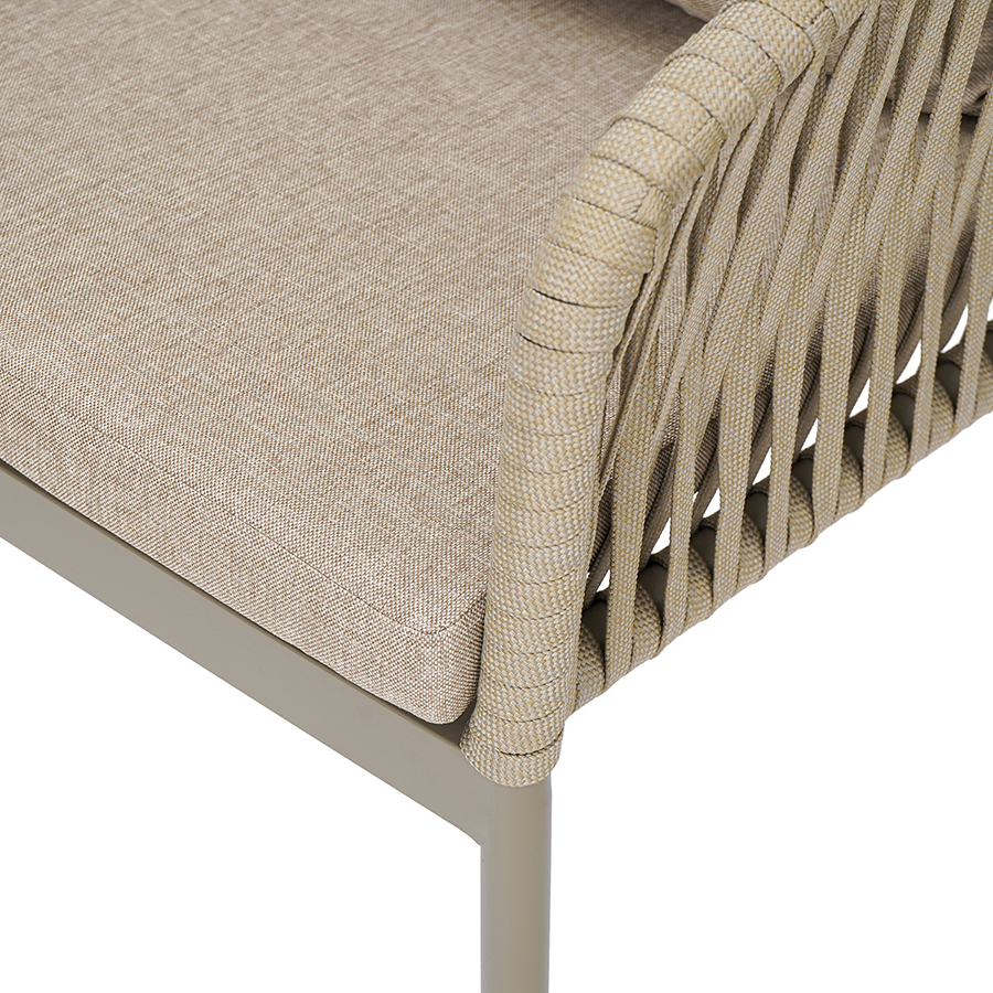 Материал: алюминий, полиэстер, пенополиуретан. Размеры: 57х58х77 см. Высота сиденья: 48 см. Цвет: серо-бежевый.