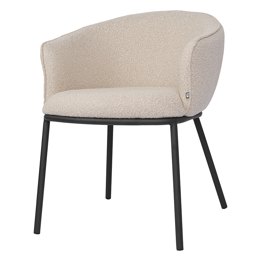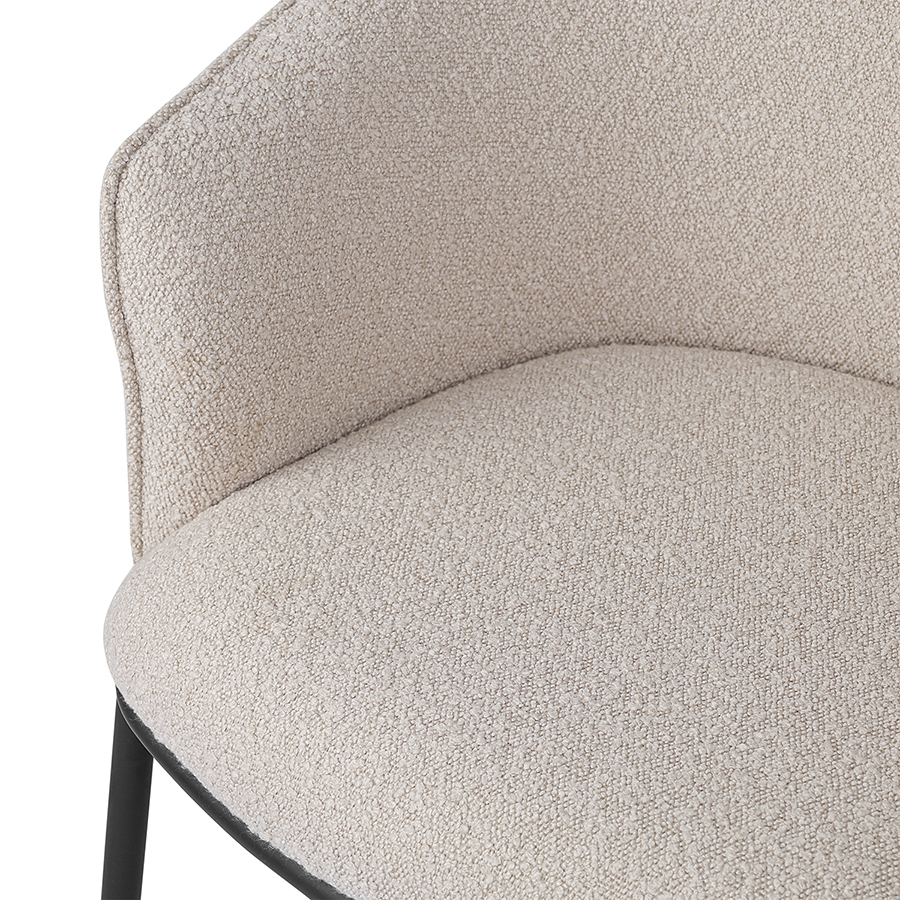 - Обивка из буклированной ткани придает стулу уютный и в то же время элегантный вид, характеризуется высокой устойчивостью к истиранию и износу.