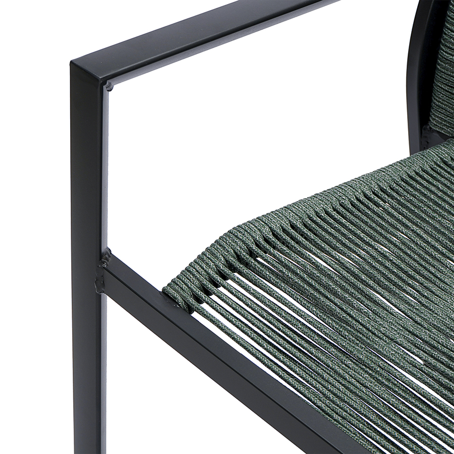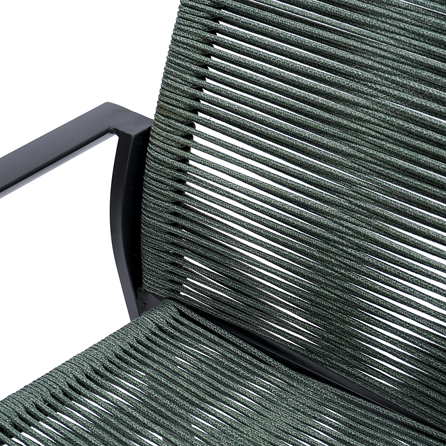 - Спинка и сиденье выполнены из плотной полиэфирной веревки диаметром 6 мм, устойчивой к воздействию влаги, пятнам, плесени и УФ-излучению.