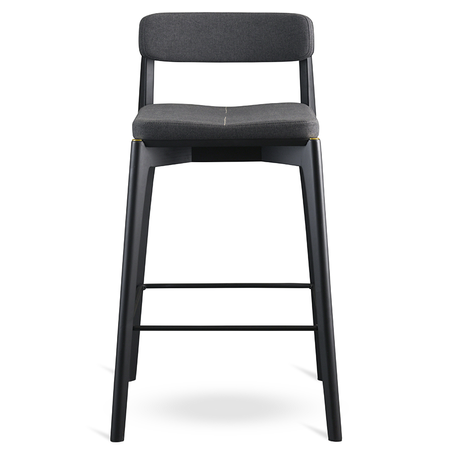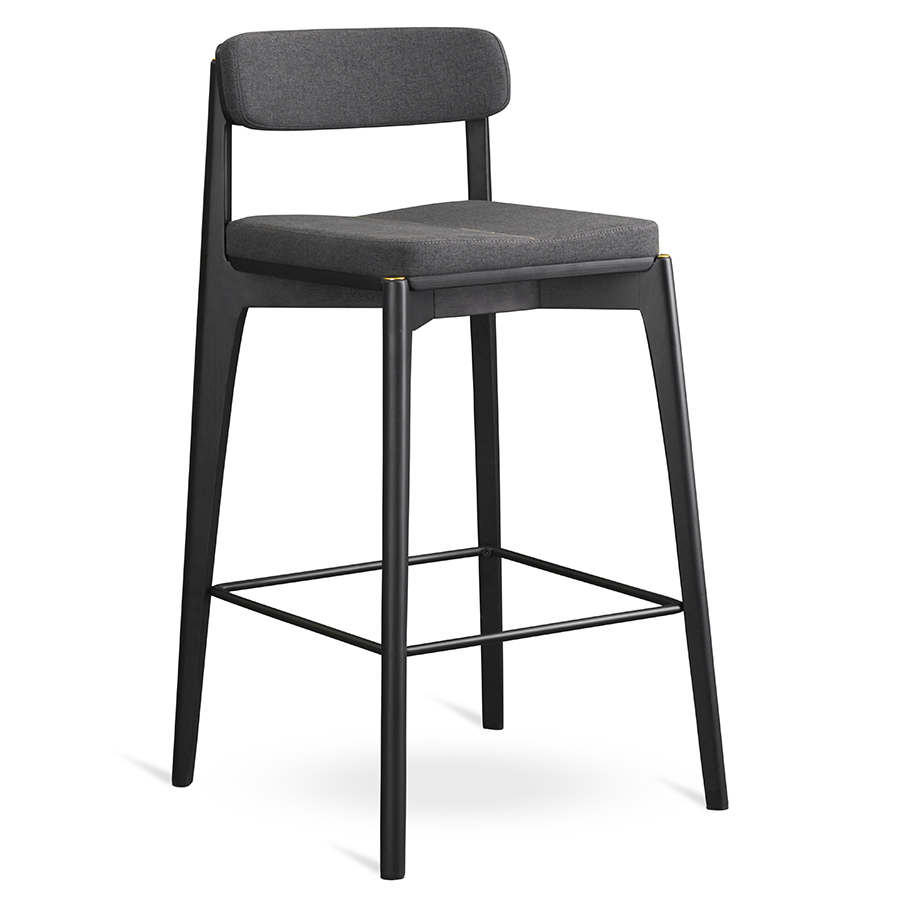 Материалы: массив ясеня, фанера, 100%, полиуретан, 100%, полиэстер, сталь. Размеры: 52х55х93 см. Высота сиденья: 69 см. Ширина сиденья: 39 см. Глубина сиденья: 37 см. Высота спинки: 23 см. Ширина спинки: 37 см. Высота подножки: 25 см. Максимальная нагрузка: 136 кг. Цвет основания: черный. Цвет обивки: темно-серый.