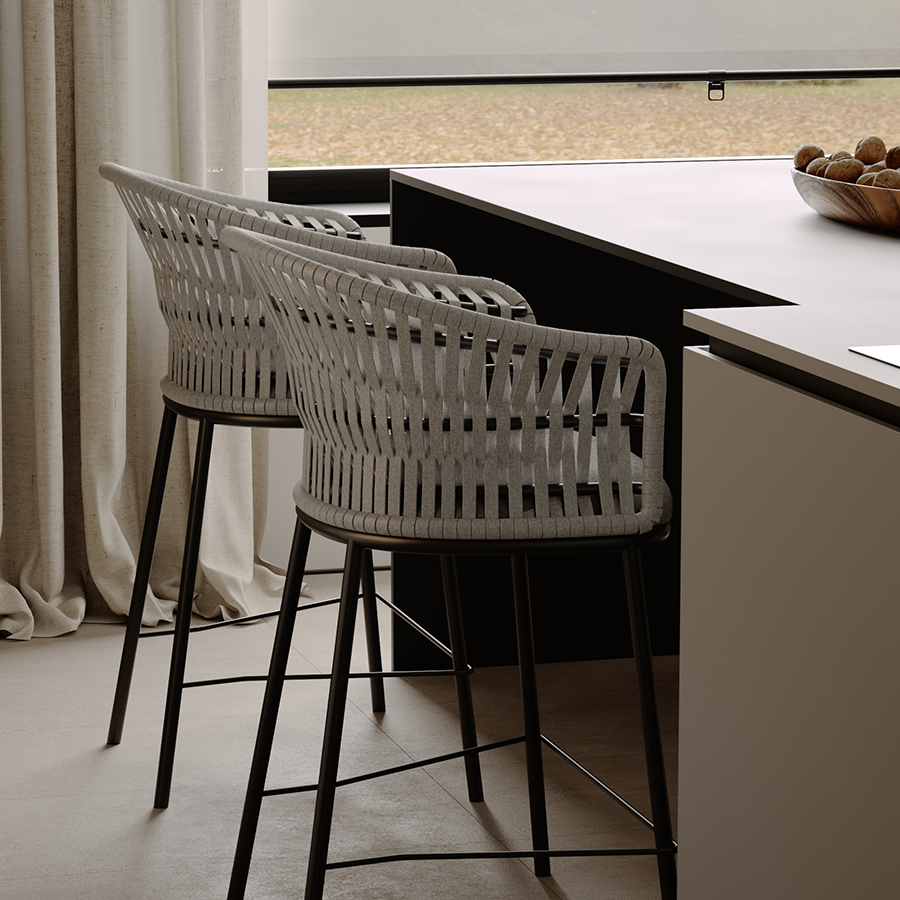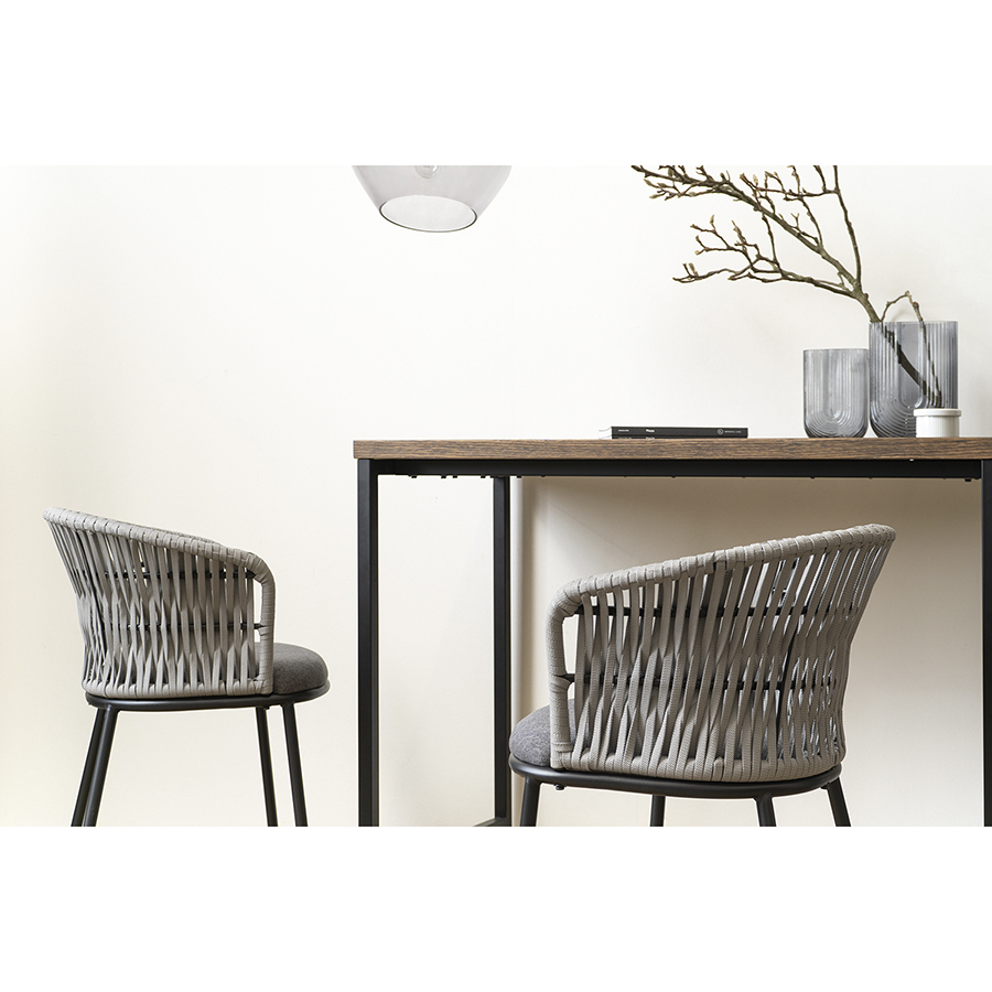 "Полубарный стул с плетеным дизайном Haugen поможет в создании комфортного пространства с уютной, расслабленной атмосферой. Такой предмет мебели великолепно дополнит барную зону на домашней кухне, в кафе или ресторане. Широкая спинка, плавно переходящая в подлокотники, глубокая посадка и специальная подножка обеспечивают комфорт во время сидения. Обивка из рогожки устойчива к износу. Материал прочный и нетребовательный в уходе. Стул отлично сочетается с таким стилевыми направлениями, как прованс, кантри, этника, скандинавский, средиземноморский и другие.