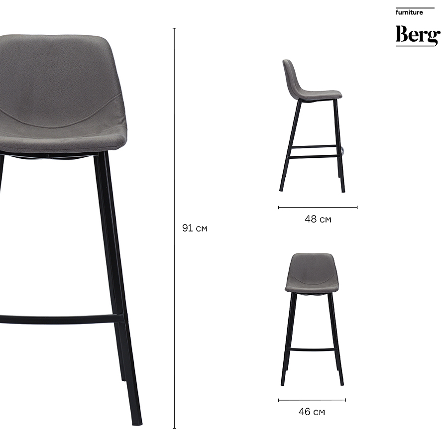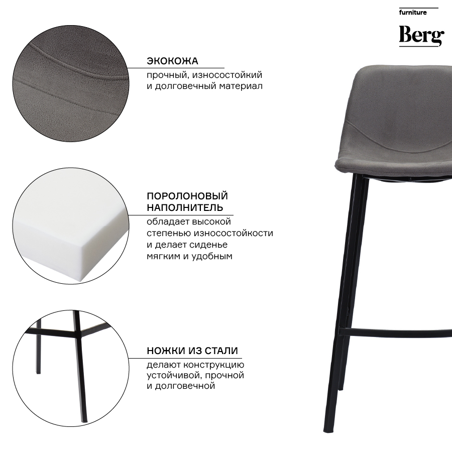 Стул полубарный Hugh, экокожа, темно-серый, Bergenson Bjorn