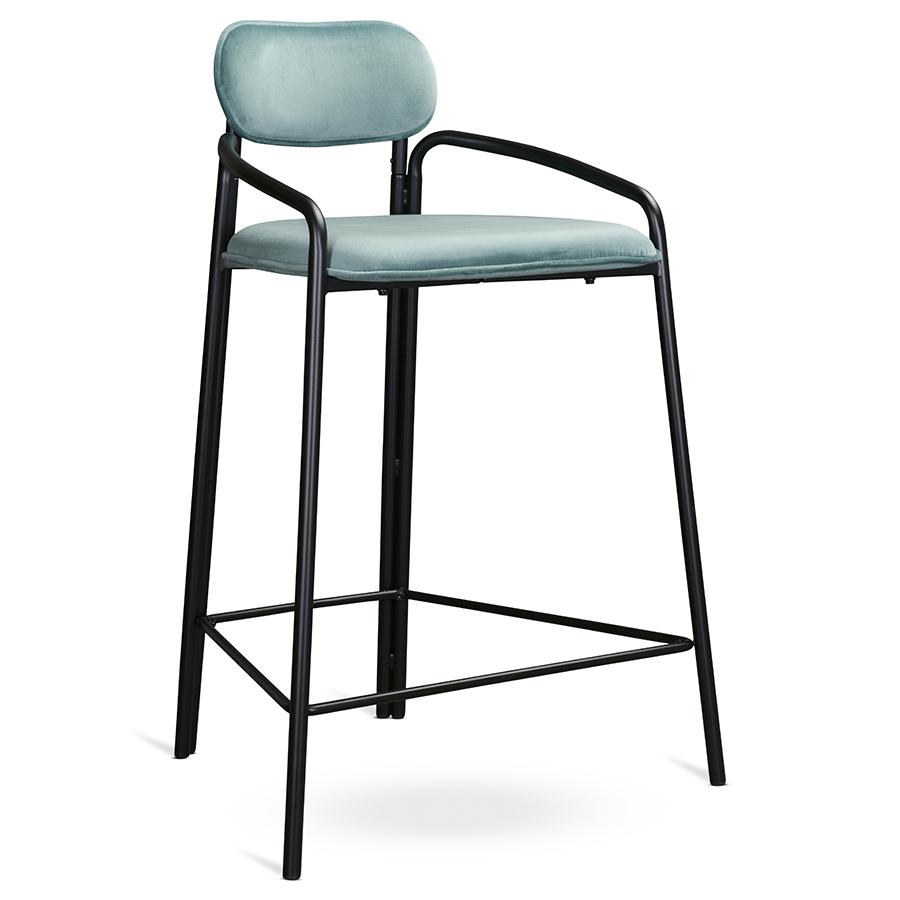 Стул полубарный Ror, Round, велюр, черный/светло-бирюзовый, LATITUDE