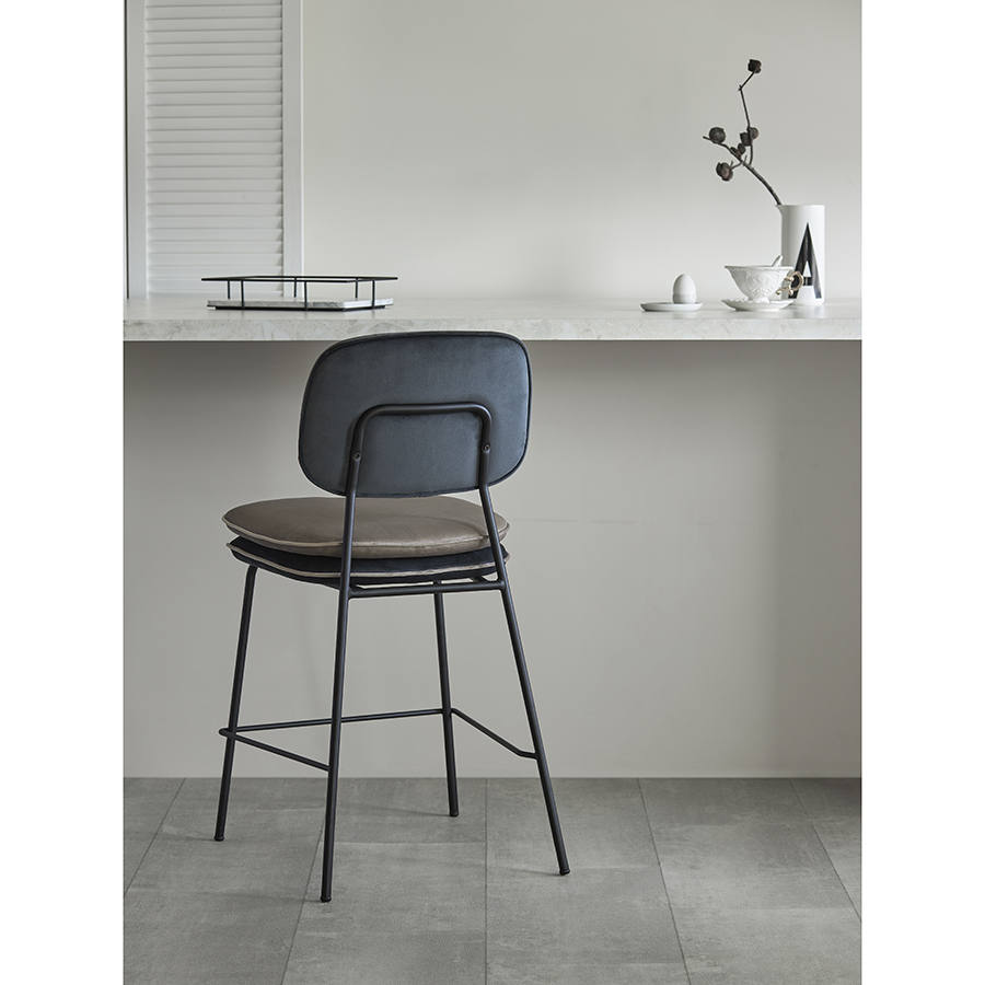 Стул полубарный с контрастным кантом Pea, велюр, темно-серый/бежевый, Bergenson Bjorn