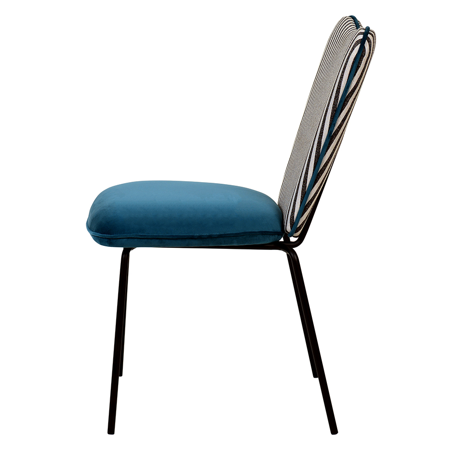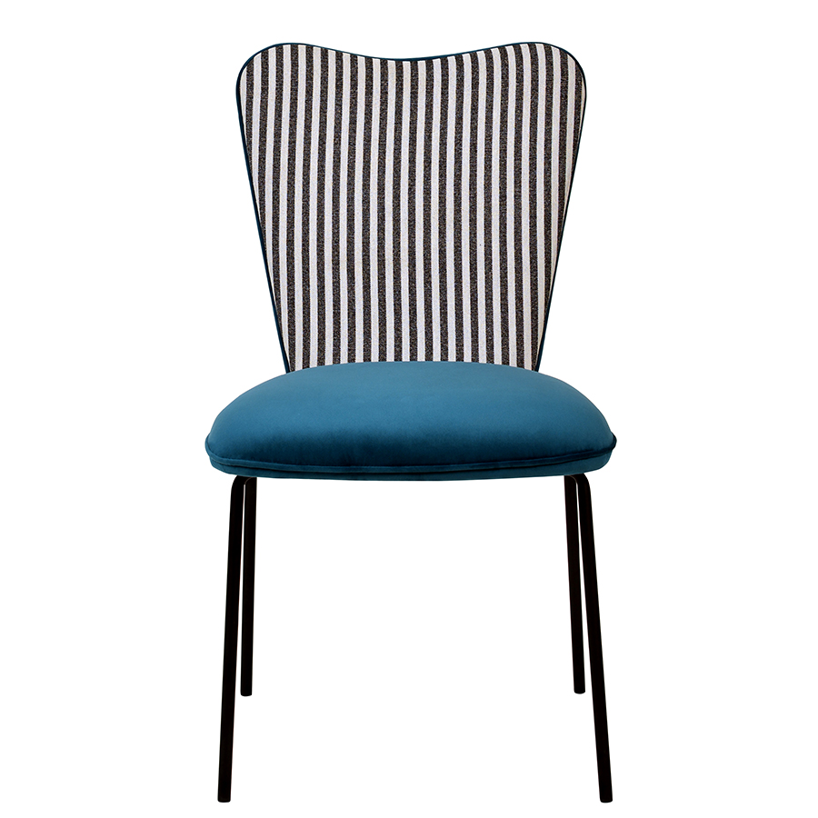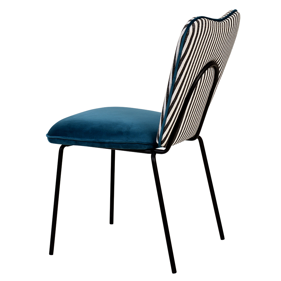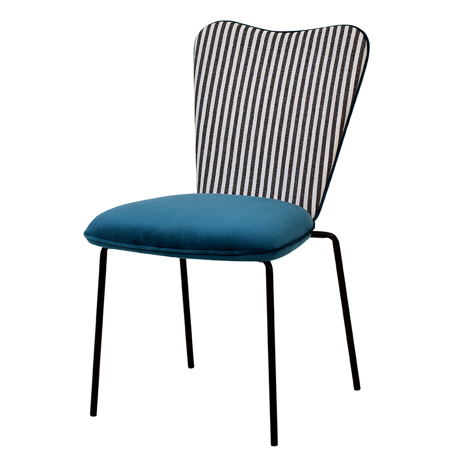 - Спинка необычной формы с полосатым принтом привносит в дизайн интересный акцент.