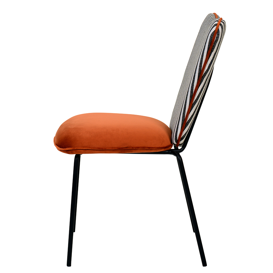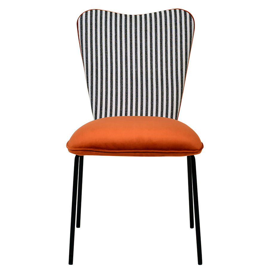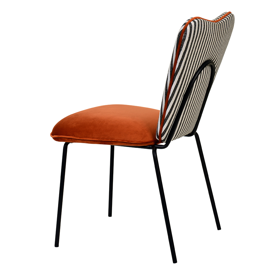- Спинка необычной формы с полосатым принтом привносит в дизайн интересный акцент.