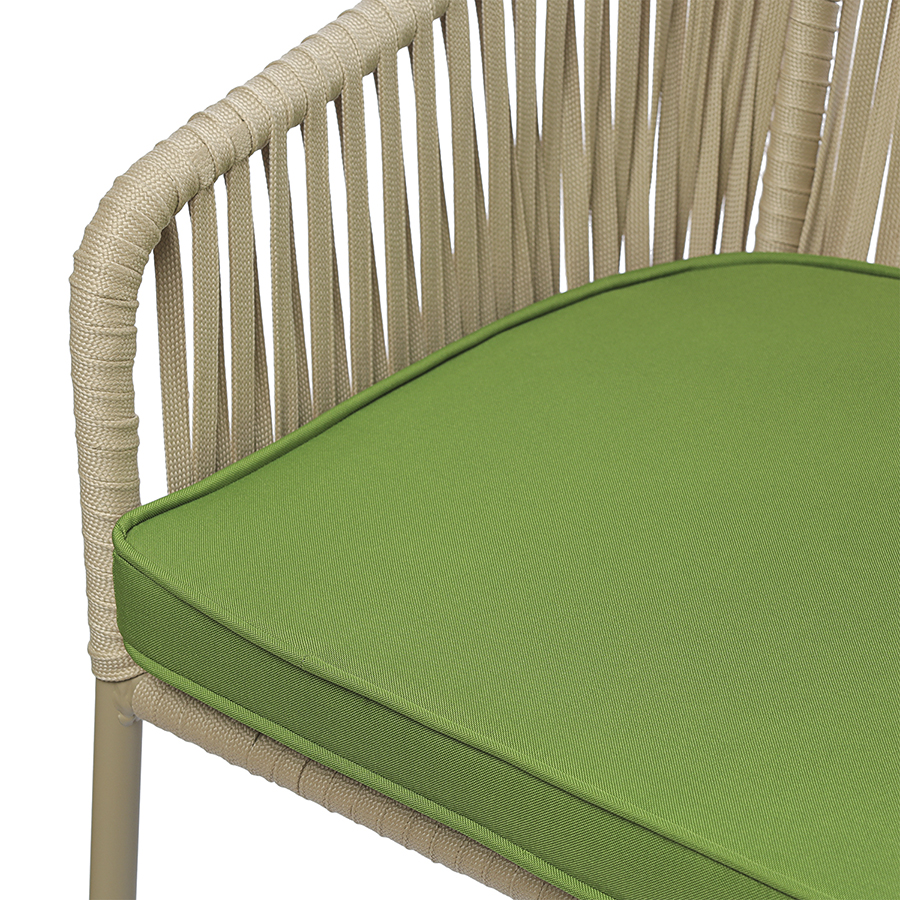 Материал: алюминий, полиэстер, пенополиуретан. Размеры: 51х50х75 см. Высота сиденья: 52 см. Ширина сиденья: 47 см. Глубина сиденья: 47 см. Высота спинки: 36 см. Ширина спинки: 51 см. Цвет: бежевый/зеленый.