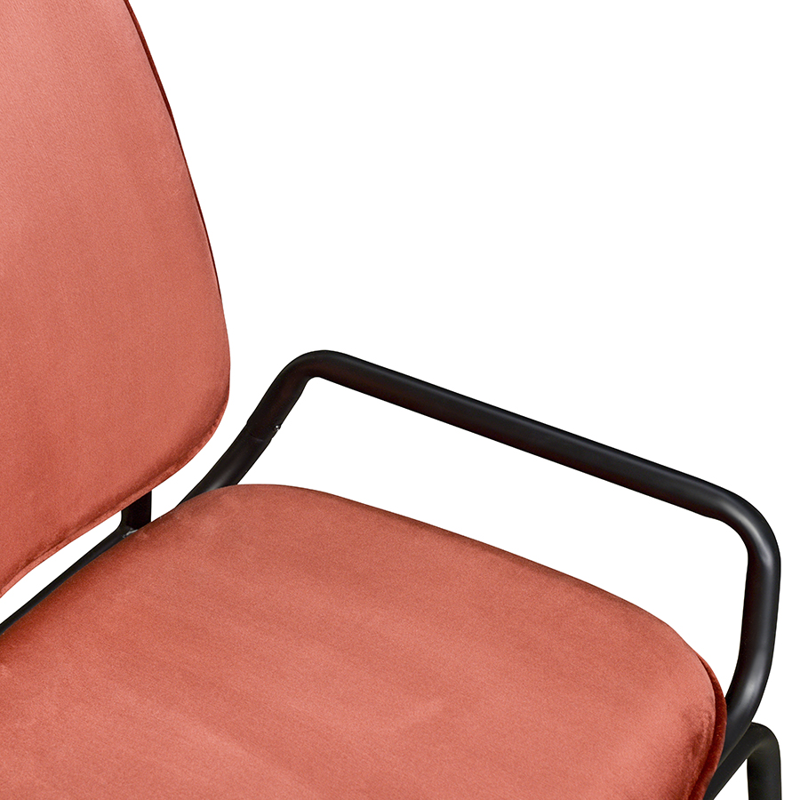 Стальной каркас с порошковым покрытием делает конструкцию прочной и надежной, а мягкий велюр с бархатистой текстурой обеспечивает тактильный комфорт. Ткань обивки обладает высокими показателями износостойкости. Используемый в качестве наполнителя пенополиуретан отличается комфортной плотностью и жесткостью.