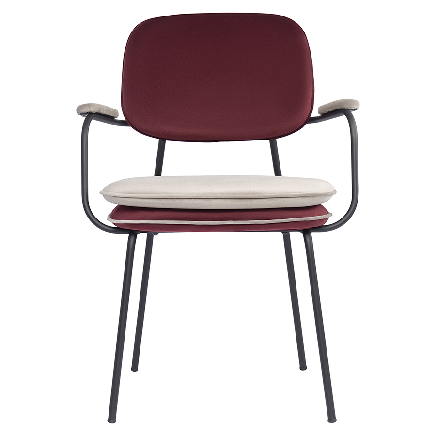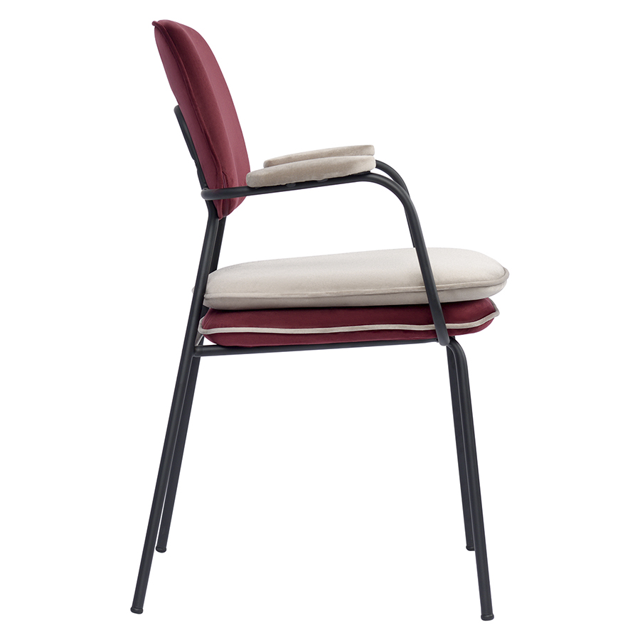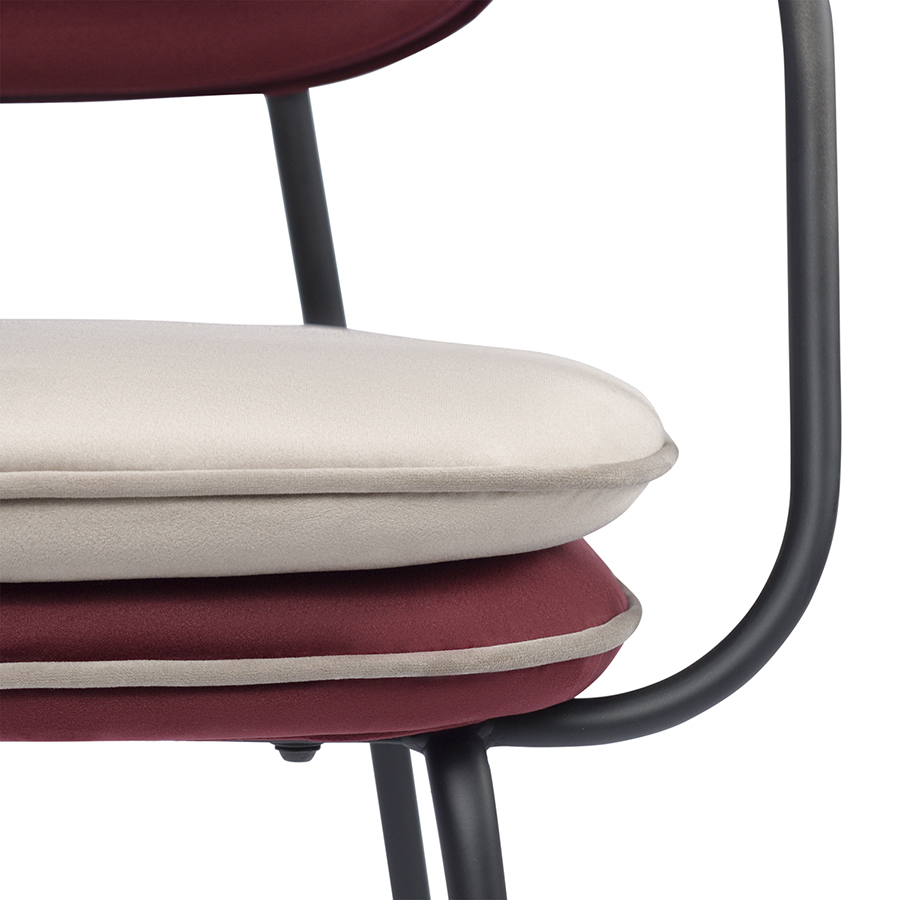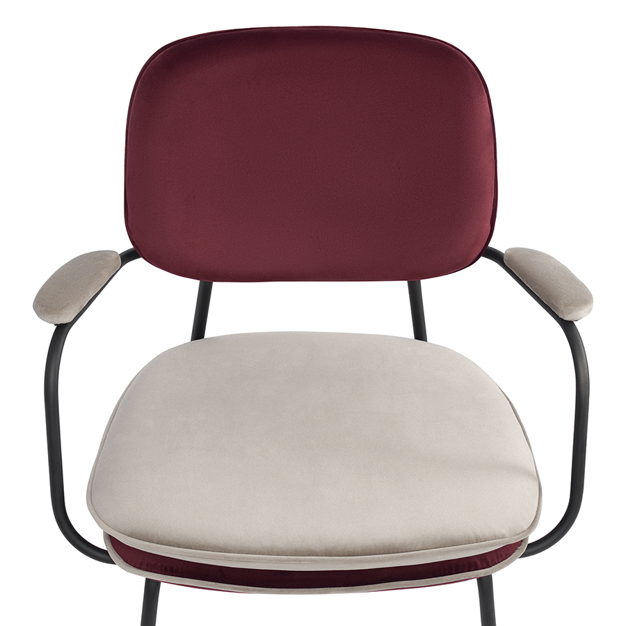 Стул с подлокотниками и контрастным кантом Pea, велюр, бордовый/бежевый, Bergenson Bjorn