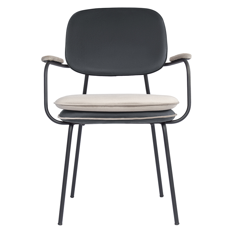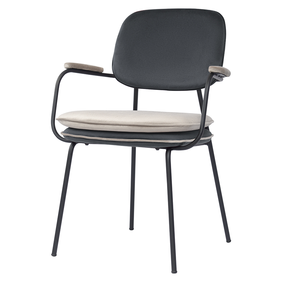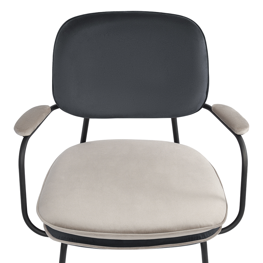 Стул с подлокотниками и контрастным кантом Pea, велюр, темно-серый/бежевый, Bergenson Bjorn