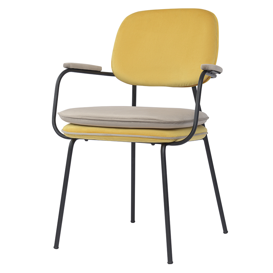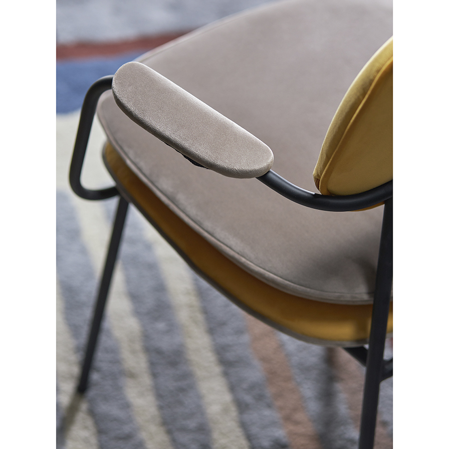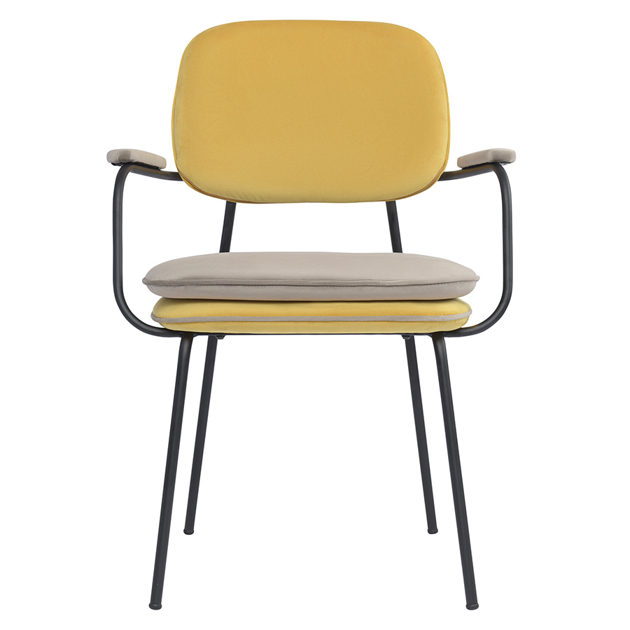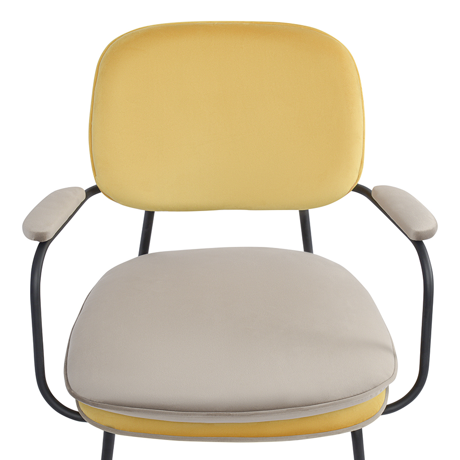 Стул с подлокотниками и контрастным кантом Pea, велюр, желтый/бежевый, Bergenson Bjorn