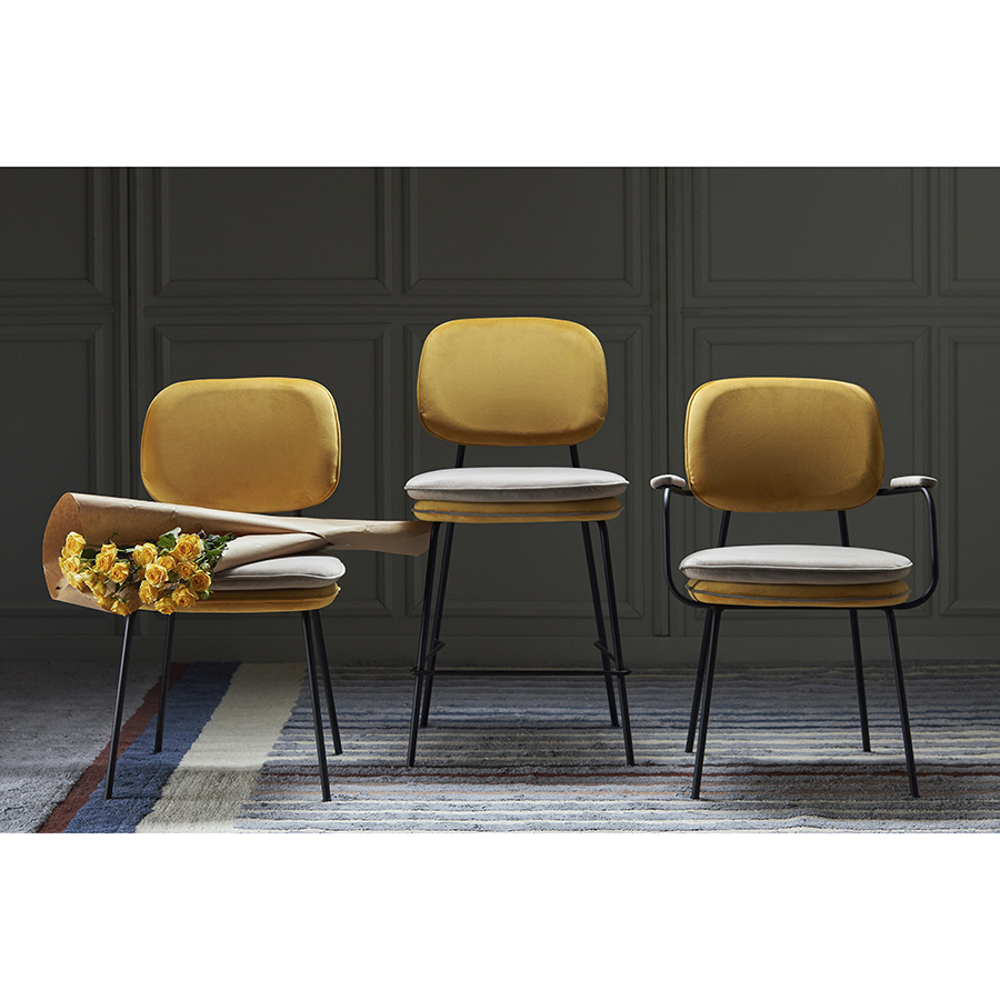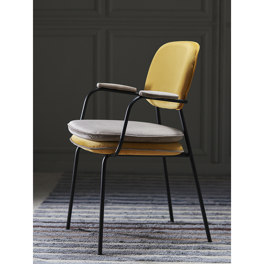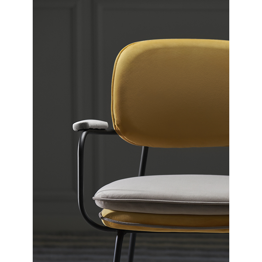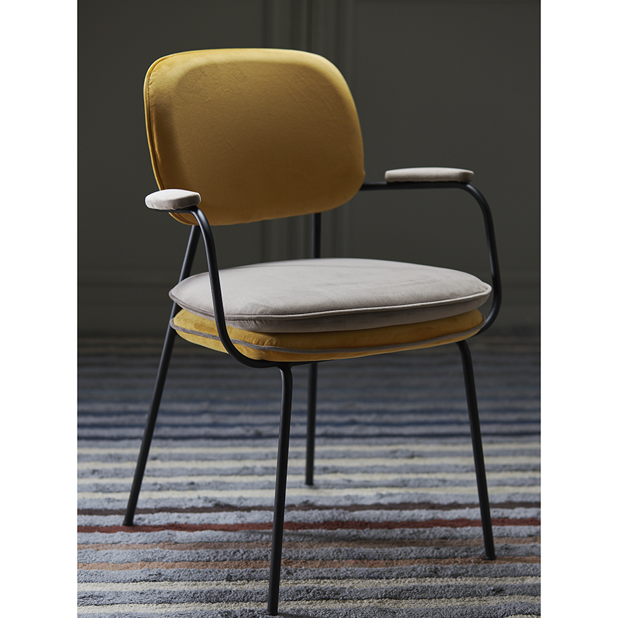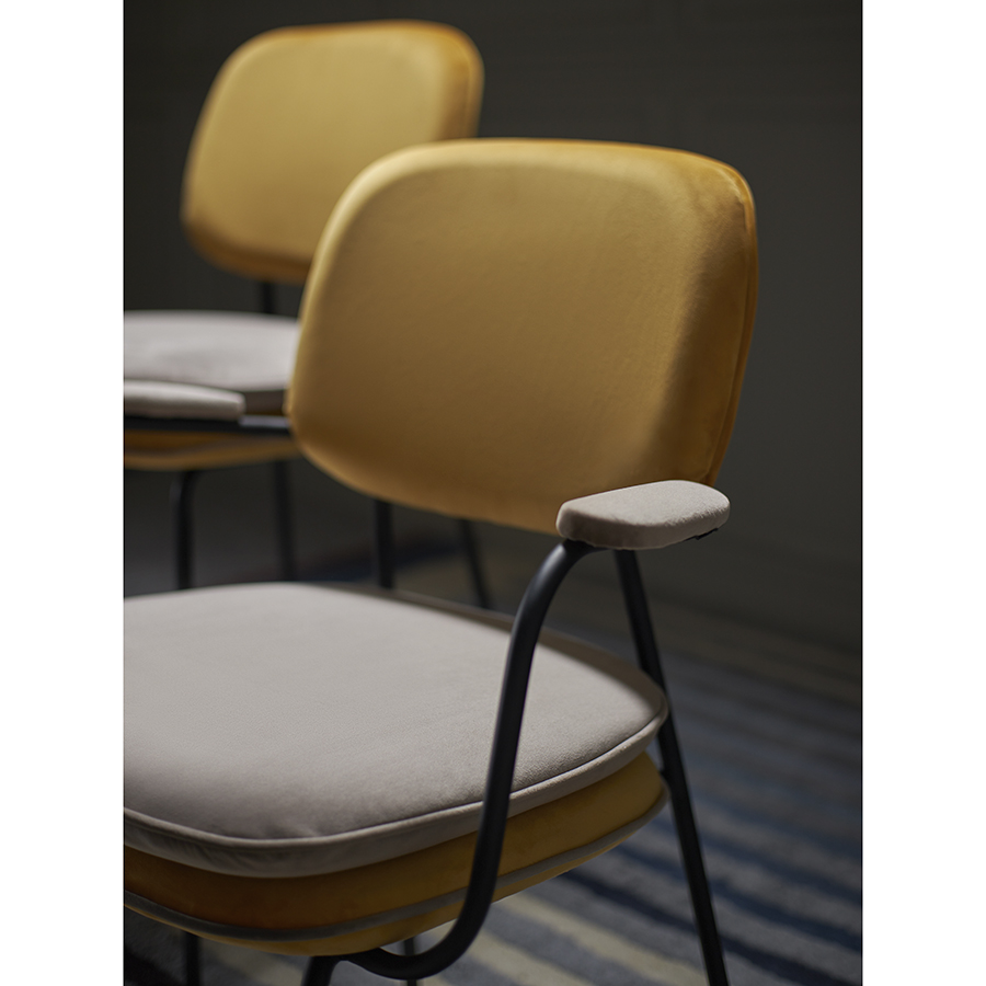 Стул с подлокотниками и контрастным кантом Pea, велюр, желтый/бежевый, Bergenson Bjorn