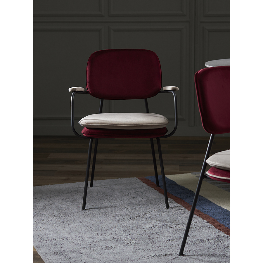 Стул с подлокотниками Pea, велюр, бордовый/бежевый, Bergenson Bjorn