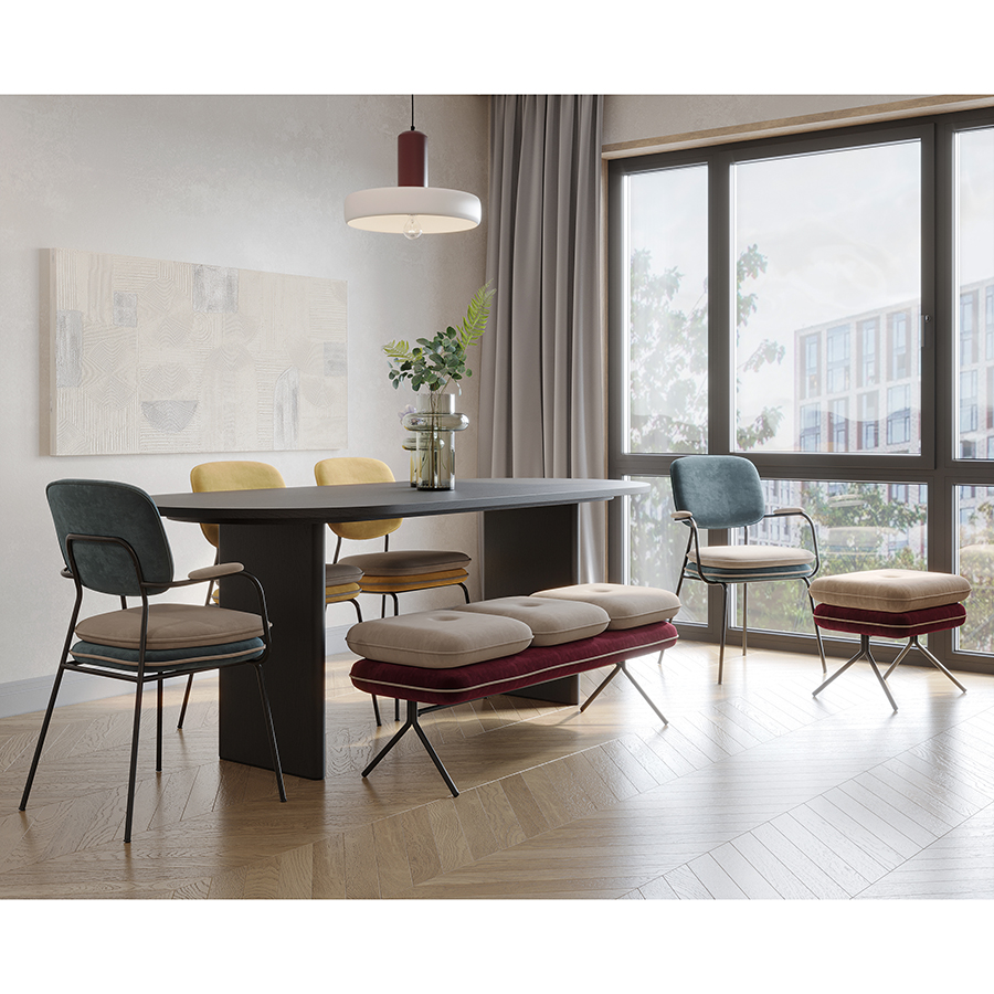 "Стул Pea с подлокотниками и мягкой обивкой из бархатистого велюра станет настоящим украшением интерьера и идеальным выбором для ценителей качественной и элегантной мебели.