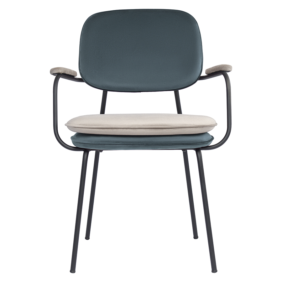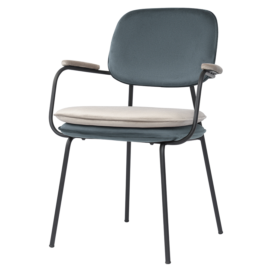 Стул с подлокотниками Pea, велюр, сине-зеленый/бежевый, Bergenson Bjorn