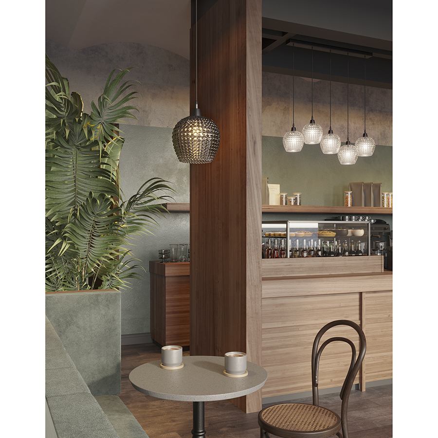 - Плафоны из затемненного стекла приглушают свет от ламп, создавая в помещении комфортное освещение.