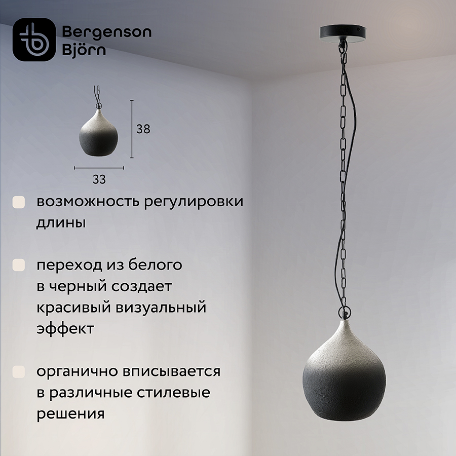 Светильник подвесной Sustainable collection, 33х38 см, черный/белый, Bergenson Bjorn