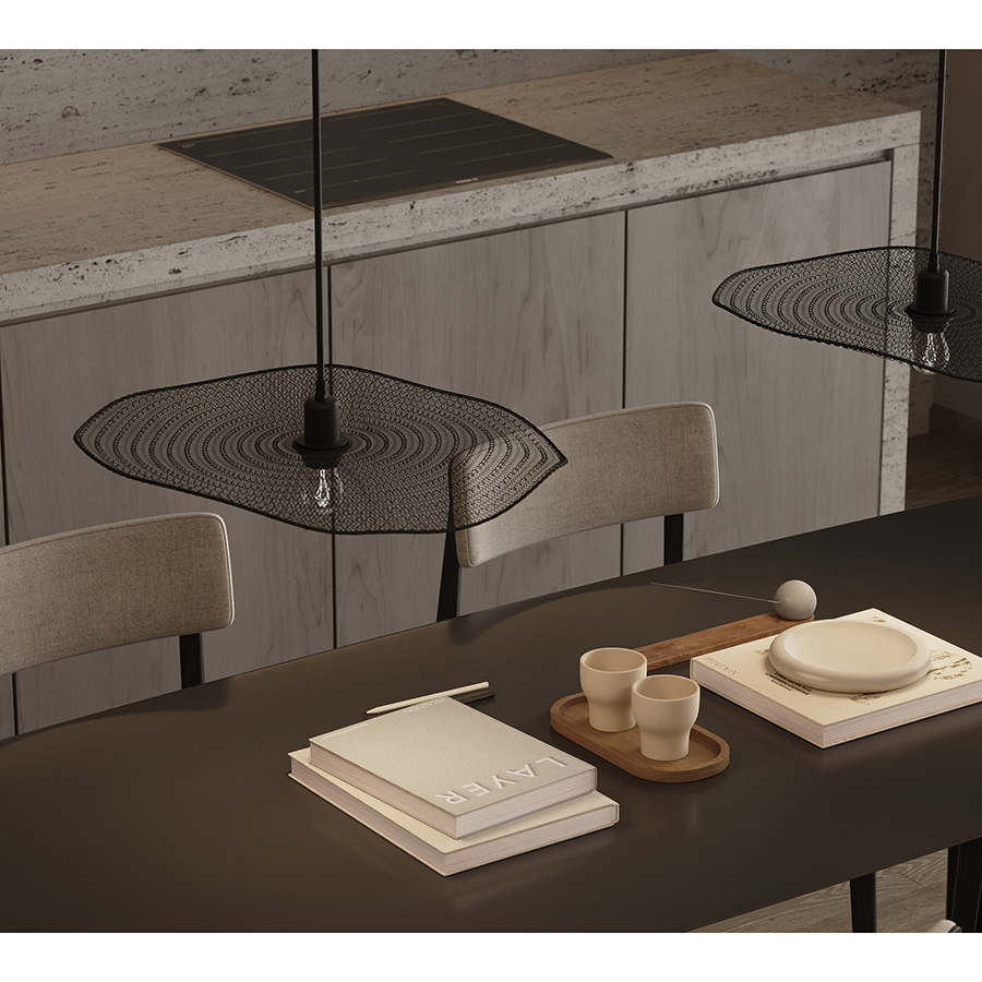 - Удлиненный провод позволяет использовать подвес для освещения функциональных зон.
