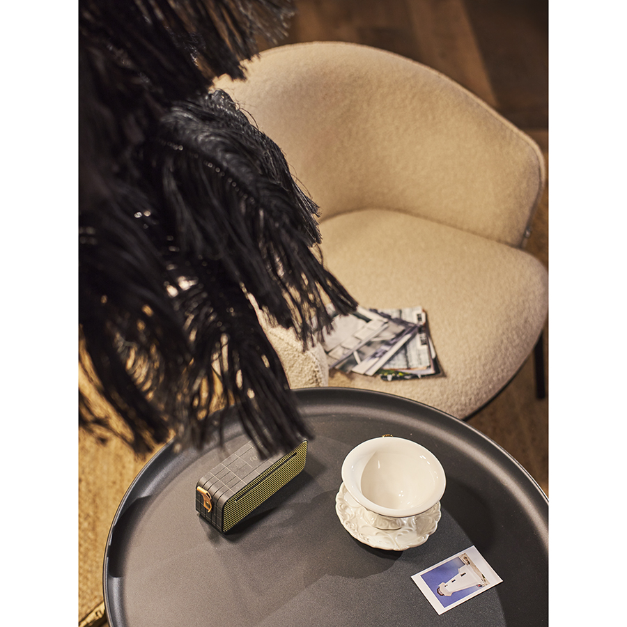 - Светильник имеет основание из алюминия и плафон из растительного волокна, что делает его надежным и долговечным, но при этом легким и удобным в перемещении.