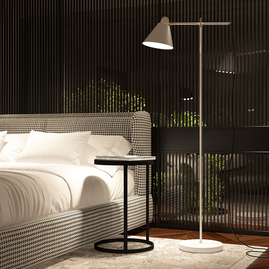 - Небольшой вес позволяет без труда перемещать торшер, а длинный провод дает возможность установки в любом уголке комнаты.