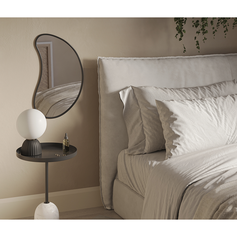 "Зеркало Reflexion от дизайнерского бренда Bergenson Bjorn поможет освежить и визуально расширить пространство за счет отражения света. Асимметричная форма превращает его из функционального предмета интерьера в настоящий арт-объект. Модель прекрасно смотрится в спальне, прихожей, гостиной, кабинете и других комнатах.